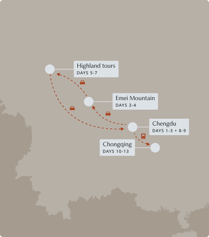 The Mistbound Realm is where time moves sideways. In Chengdu, life slows with tea and spice; in Chongqing, towers climb above rivers and neon cuts through the fog; in the highlands, monasteries and peaks dissolve into silence. This journey is less about where you go, and more about how the land makes you feel—rested, recharged, and reimagined.